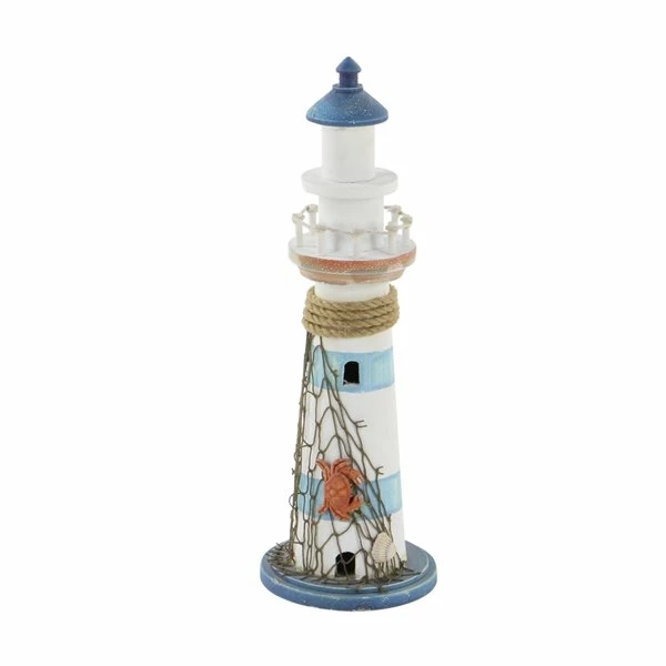 - White and aqua-stripes with jute rope detail and a fisherman’s net with a crab and shell