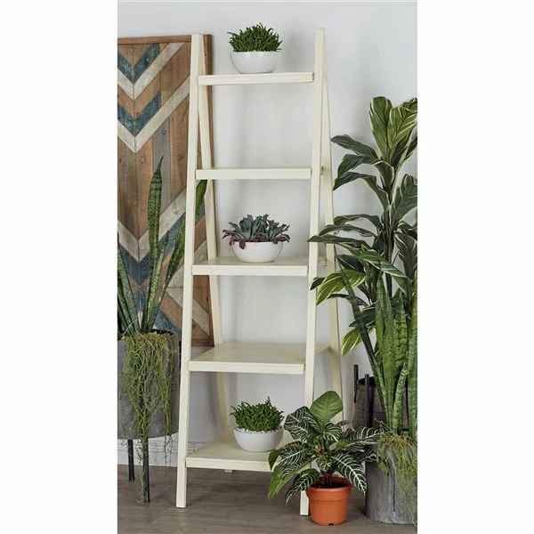 - This ladder shelf has 5 tiers that allow it to hold sculpture figurines, indoor plants, picture frames and more