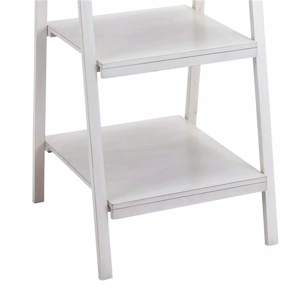 - Open ladder shelf with a matte white finish