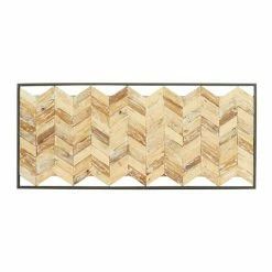 Deals 😉 Grayson Lane 22.80-in H x 51.80-in W Brown Teak Wood and Metal Farmhouse/Rustic Abstract Wall Accent ❤️