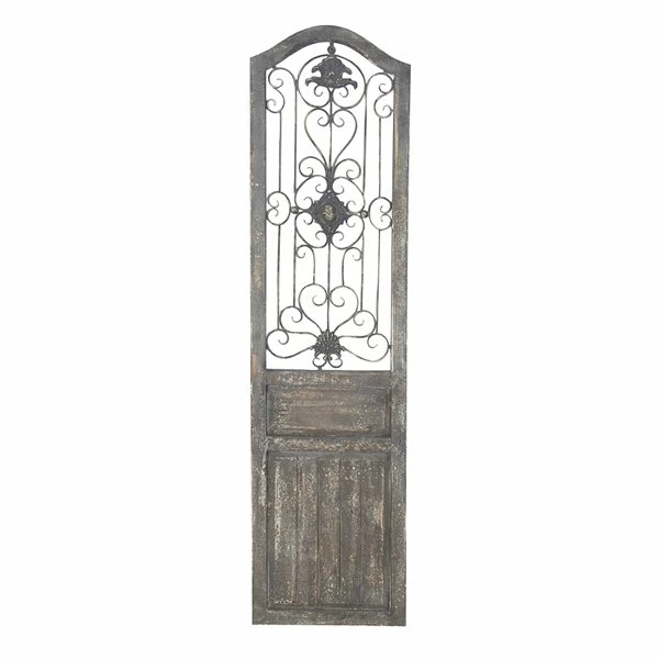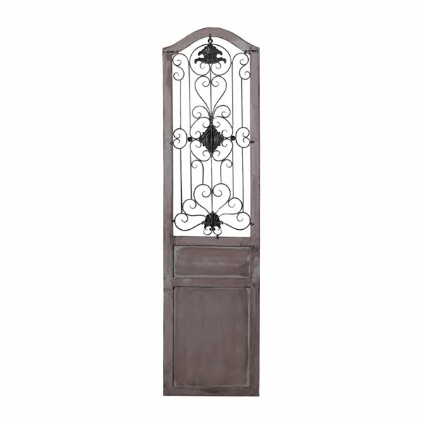 - This rectangular wall door panel with an arched top features a textured brown finish