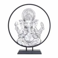 - This Lord Ganesh statue has a full metallic silver sculpture of him placed inside a round metal base standee