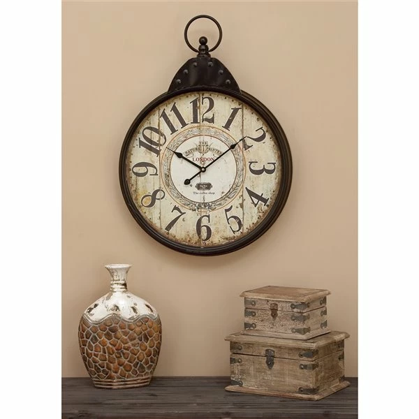 - This vintage style inspired wall clock features a timeless vibe thanks to its distressed finish and vintage construction