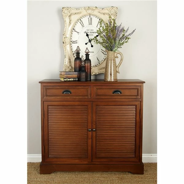 - Arrange this louvered cabinet in your entryway, lobby, living room, reading room, or bedroom