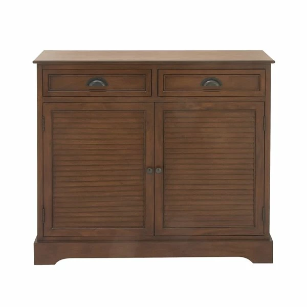 - Features 2 slide-out drawers and 2 cabinet doors with louvred fronts