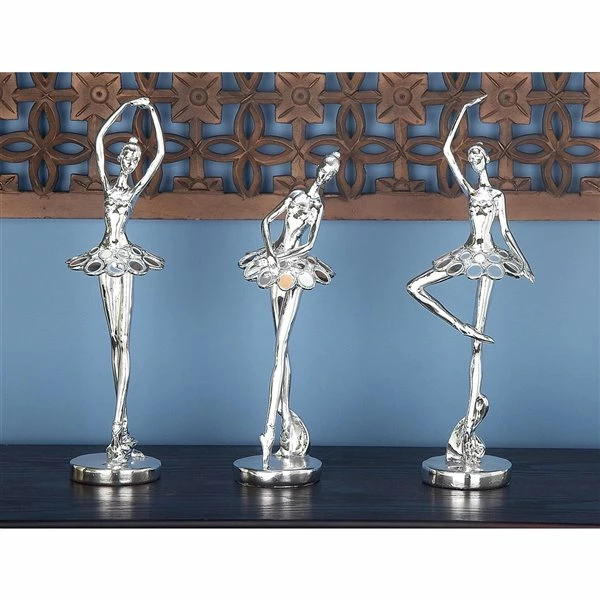 Deals 🤩 Grayson Lane Set of 3 14-in , 14-in , 12-in Silver Modern Dancer Sculpture – Poly Stone 🎁