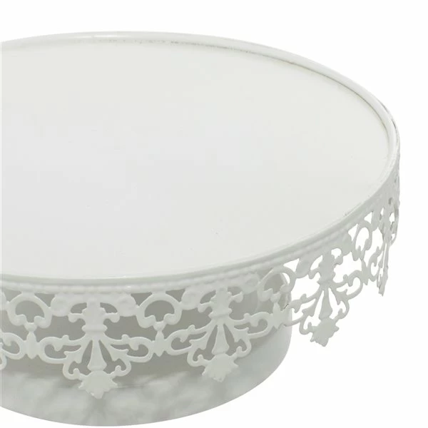 - This vintage style inspired design white iron cupcake stand set features a round surface with elaborate fleur-de-lis side details on the edges attached to a sturdy round base