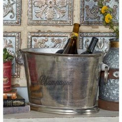 Deals 🎉 Grayson Lane 10-in x 17-in Traditional Wine Holder Bucket – Silver Metal 😉