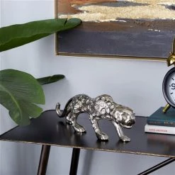 New ๐ Grayson Lane Leopard Contemporary Sculpture – Silver Aluminum – 5-in X 15-in โ