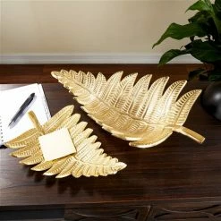 Outlet 🥰 Grayson Lane Set of 2 18-in , 12-in Contemporary Tray – Gold Aluminum 👏