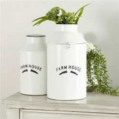 Promo ❤️ Grayson Lane Set of 2 14-in , 11-in Farmhouse Decorative Jar – White – Metal 👍
