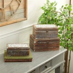 Promo ⭐ Grayson Lane Dark Brown Mango Wood Boxes – Set of 3 🧨