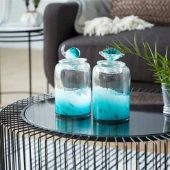 Promo ❤️ Grayson Lane 2-Piece 9.10-in x 4.70-in Blue Contemporary Decorative Jar 🥰