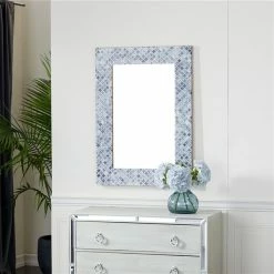 Best Pirce 👏 Grayson Lane 47.25-in L X 31.5-in W Glam Rectangle Blue Framed Wall Mirror ✔️
