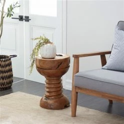 Coupon β€οΈ Grayson Lane Rustic Brown Teak Wood Round Ottoman βοΈ