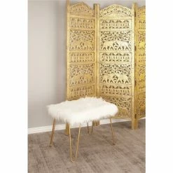 Cheapest 𧨠Grayson Lane Modern White Faux Fur and Gold Frame Rectangle Ottoman β