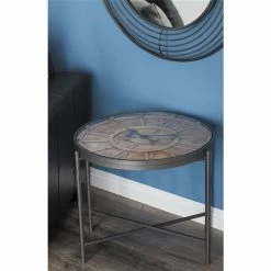 Deals β¨ Grayson LaneΒ 21-in xΒ 25-in Brown Wood Industrial Round End Table with Working Clock π