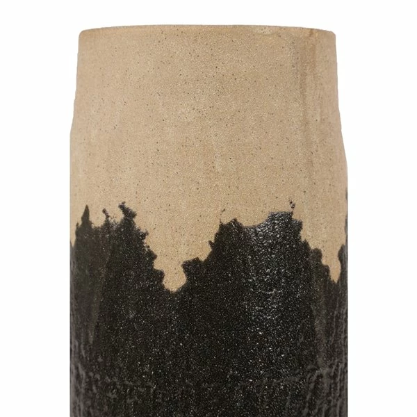 - Bold and unique, this vase has tactile, handmade charm in its hand-painted glossy black glaze pattern over a matte tan base