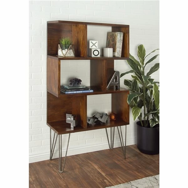 - Features 6 storage cubes made from solid wood and four iron legs base with a unique accent look