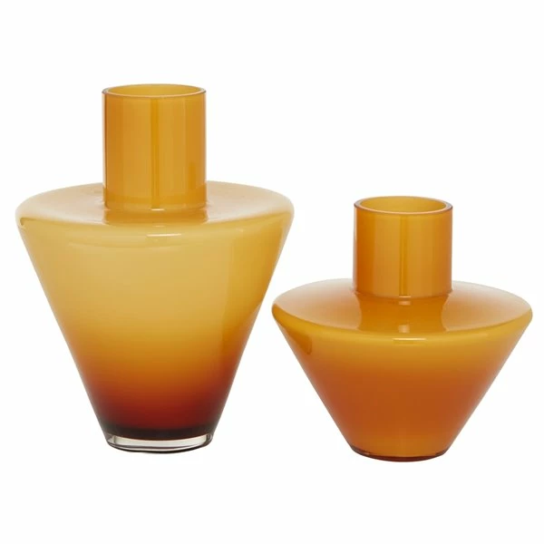 - These gradient orange vases are boldly shaped with a triangular body and wide cylindrical mouth