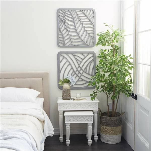Discount 🤩 Grayson Lane 24-in x 24-in Grey Wooden Eclectic Abstract Wall Decor – Set of 2 ✨