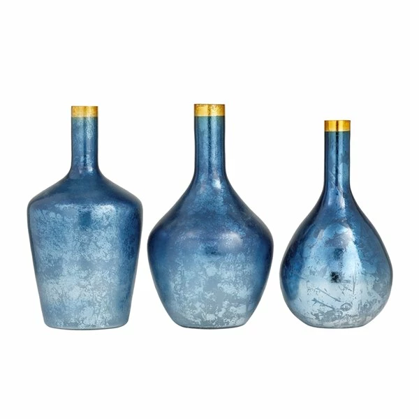 Discount ❤️ Grayson Lane 3-Piece 13.55-in x 7.70-in Blue Casual Vase 🧨