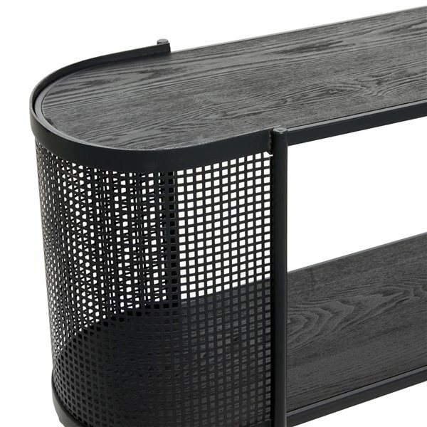 - This elegant contemporary black metal console table will make a bold statement of style in your living room when paired with matching decor