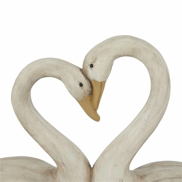 - This ceramic swan figurine showcases a swan couple with their necks and heads forming a delightfully charming heart shape