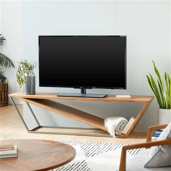 - This rectangle bench table features two triangles, one mahogany wood and one iron, forming a versatile accent piece