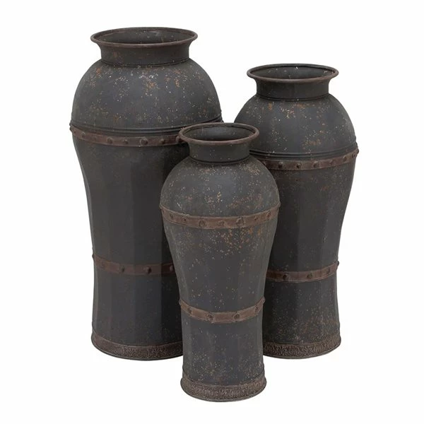 - This set of rustic iron vases are ideal for vintage, antique, and industrial-themed living spaces. Rustic style designed for a warm and cozy interior
