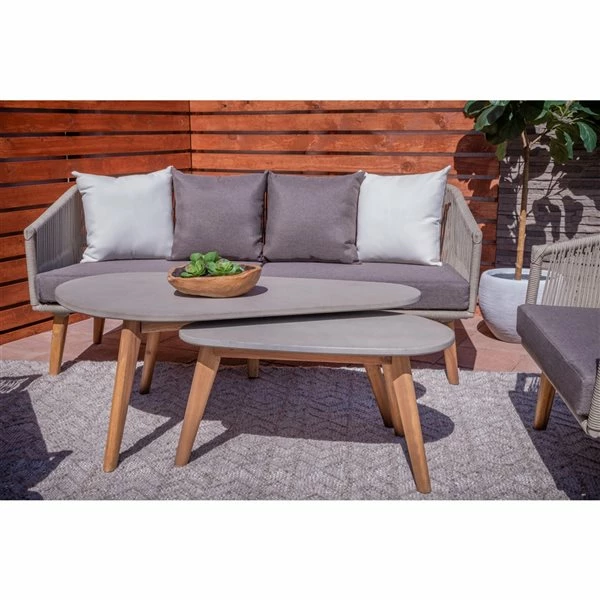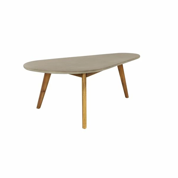 - This grey outdoor table has a lightweight and durable polycement tabletop and 4 mould and water-resistant acacia wood legs