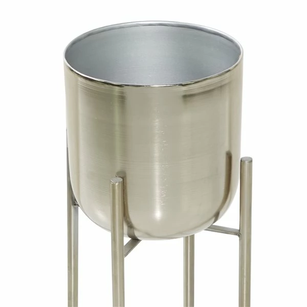 - Each cylindrical planter with a rounded base elevates from the base with an X-shaped stand