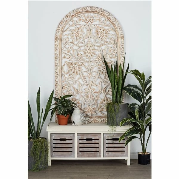 - Serves as a multi-functional and elegant seat and organizer for the mudroom, entryway, or hallway