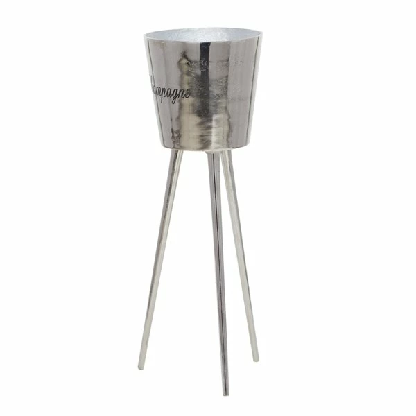 - Entertain in style or use as a storage display to keep your bottled beverages cool and protected on any surface with this silver standing wine bucket