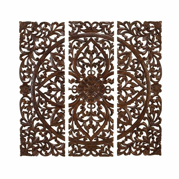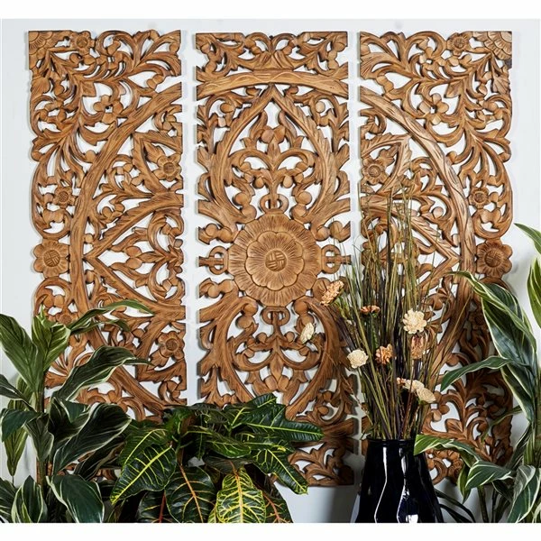 Flash Sale 😍 Grayson Lane 48-in H x 16-in W Brown MDF Wood Traditional Abstract Wall Accent – 3-Pack 🔥