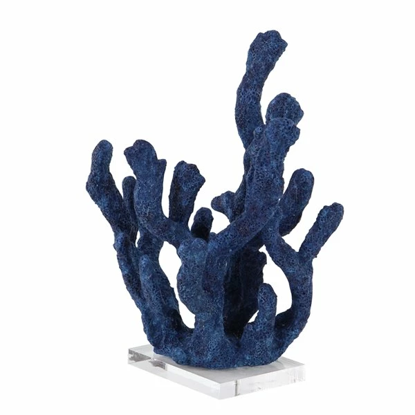 - This sculpture features a reef coral in a bright blue finish mounted on a nice square base