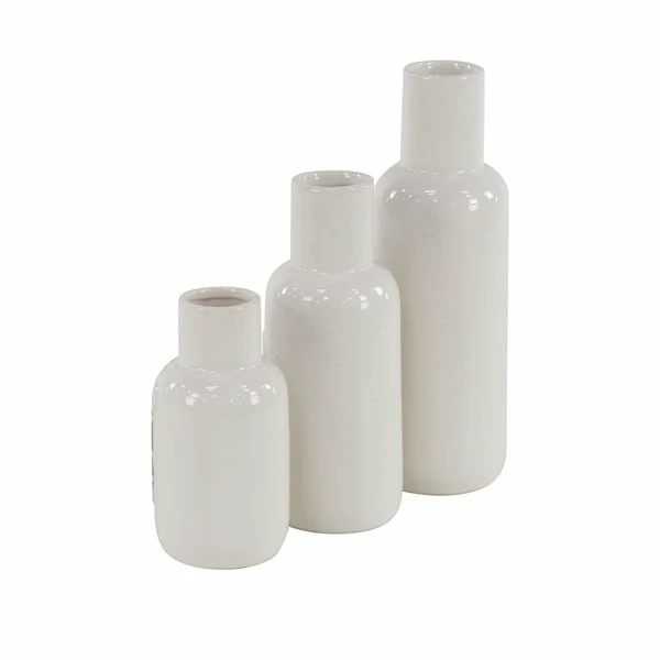 Flash Sale ⌛ Grayson Lane Coastal Style Vase in White Stoneware – Set of 3 😀