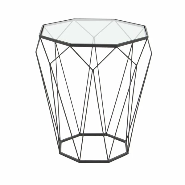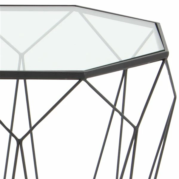 - This contemporary-themed accent table highlights a jade-black metal frame finish with a clear glass tabletop