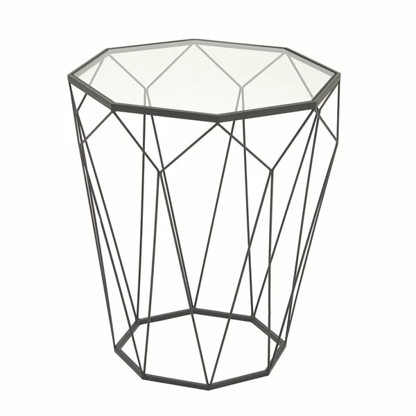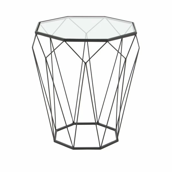 - This geometric drum accent table is a posh medley of solid iron and clear glass