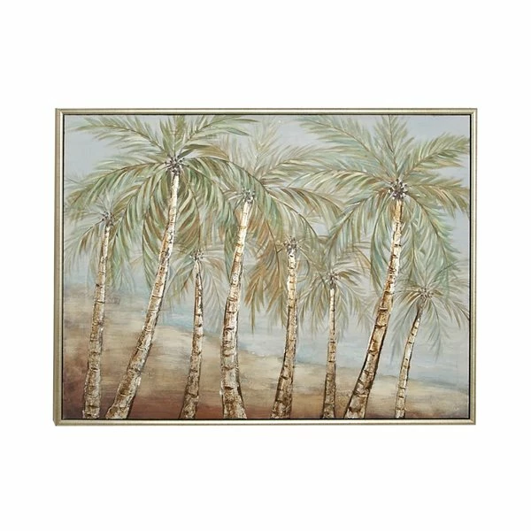 Flash Sale 🎉 Grayson Lane Gold Wood Framed 37-in H x 48-in W Floral Green Canvas Hand-Painted Painting 🔥