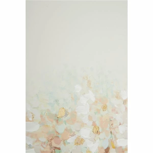 - This canvas wall art highlights a medley of calm and nude hues to depict an abstract foliage