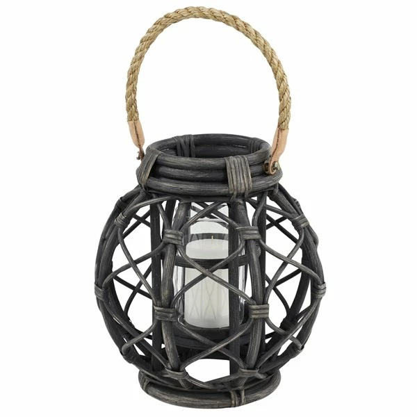 - Full of rustic charm, this black decorative lantern is handmade with rattan and features a natural-colored abaca banana bark rope handle with brown leather binders. Add your colored or white candles for some dreamy illumination.