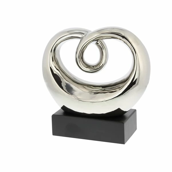 - An abstract sculpture with glossy smooth finish on a solid rectangle base