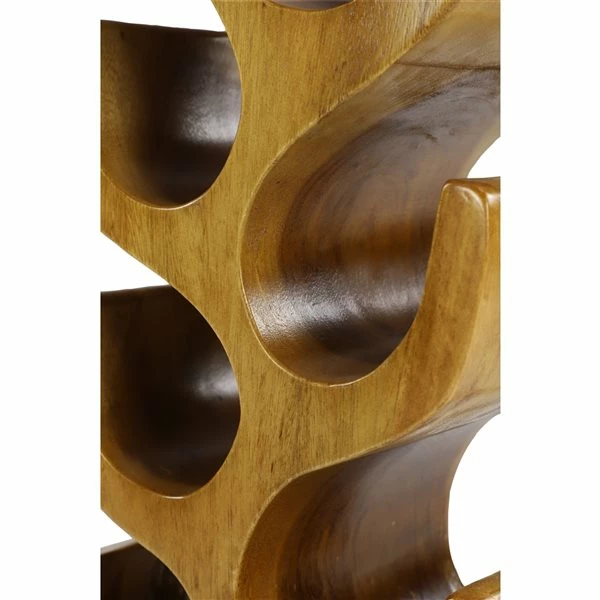 - The warm browns, golds, and cocoa colours swim throughout the wood grain of this wine rack sculpture, complimenting the plant-like silhouette