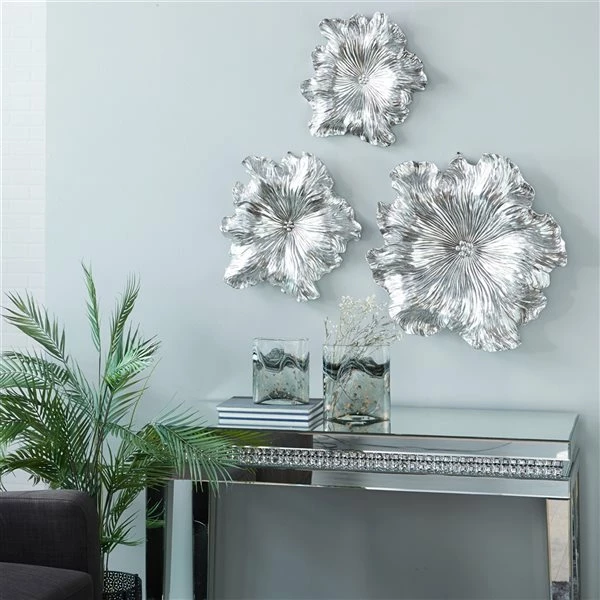 Hot Sale ๐ Grayson Lane 17-in, 19-in and 26-in Silver Floral and Botanical Metal Wall Accent – Set of 3 ๐