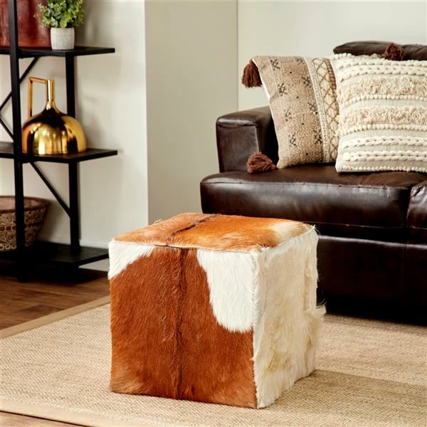 - Use this brown leather stool as a footrest or display table in your rustic living room