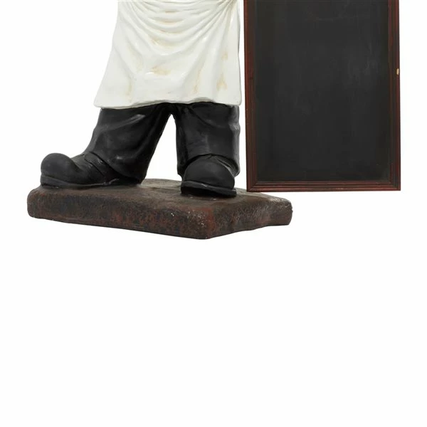 - Features a gourmet chef sculpture holding a black wooden menu board