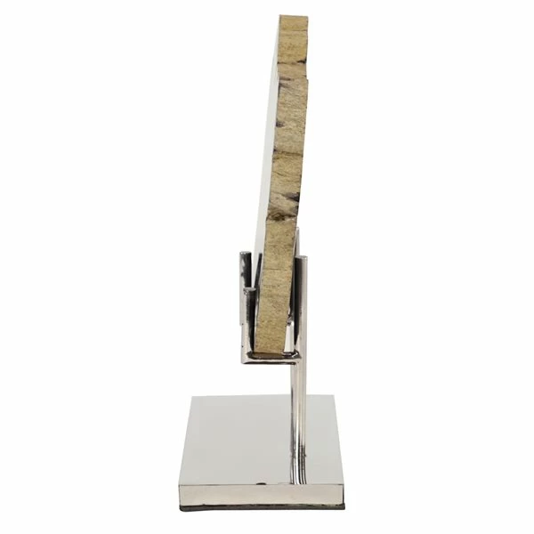 - One of a kind opulent fossil stone sculpture with sleek dark colour contrasted with a polished silver base
