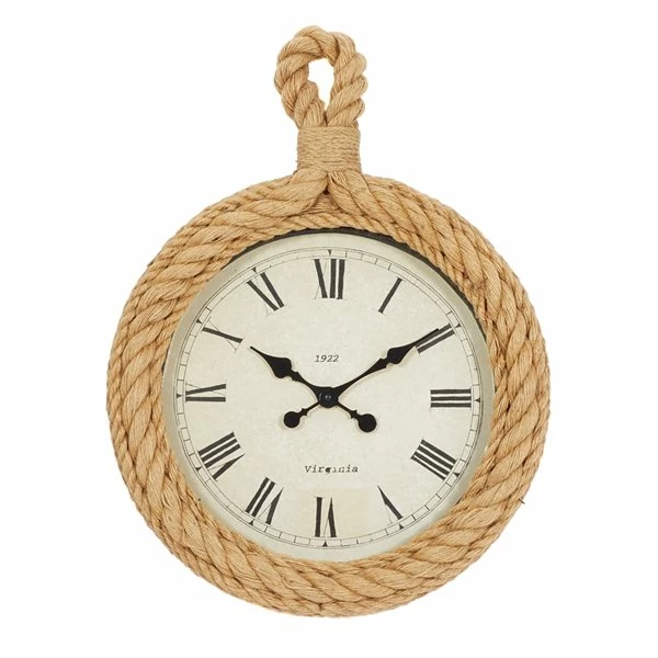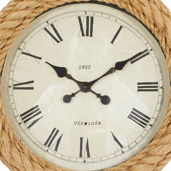Hang this hemp rope decorative wall clock in a kitchen, den, or bedroom for a coastal flair.