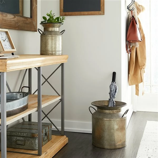 - This farmhouse milk jug is made of galvanized iron